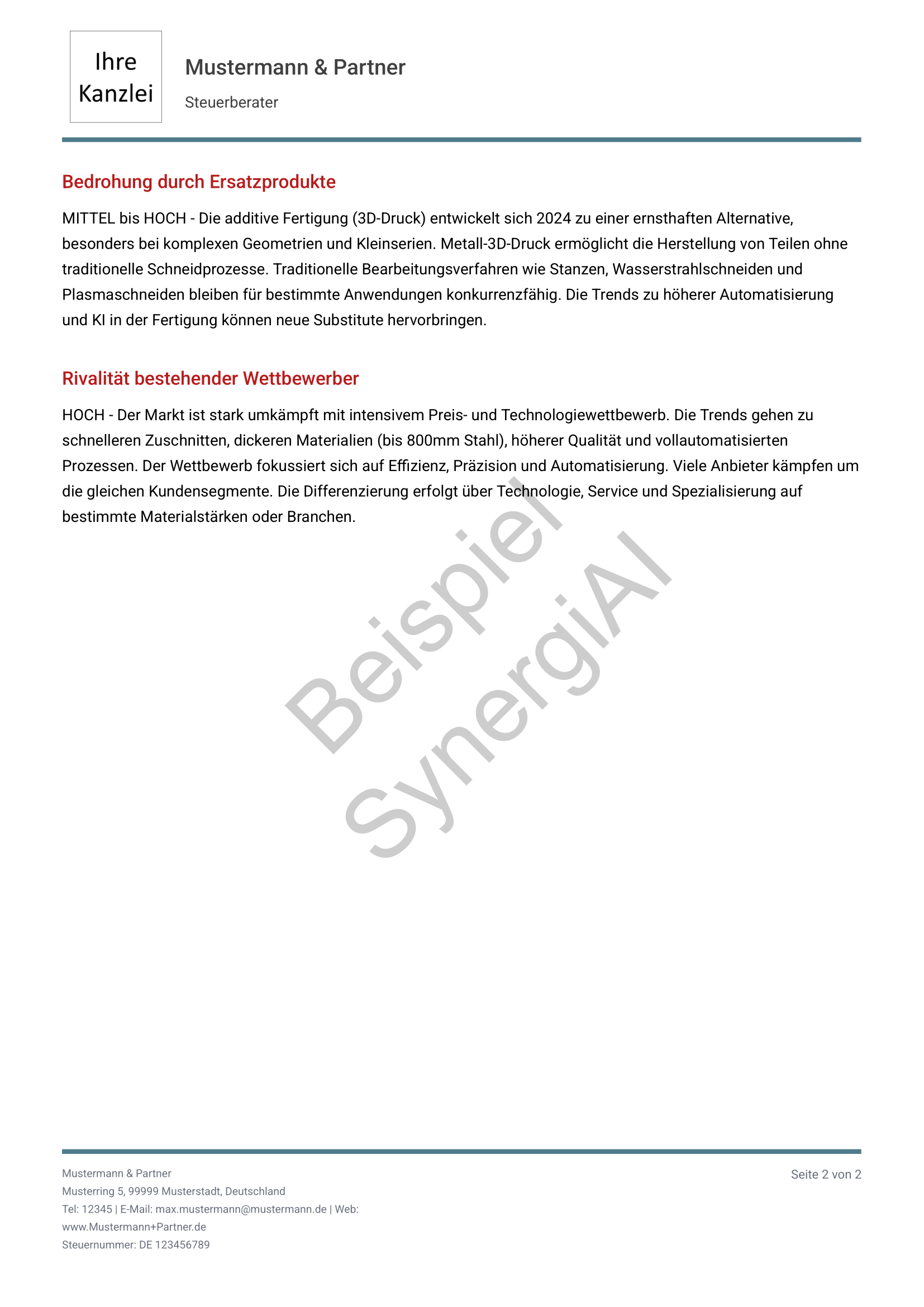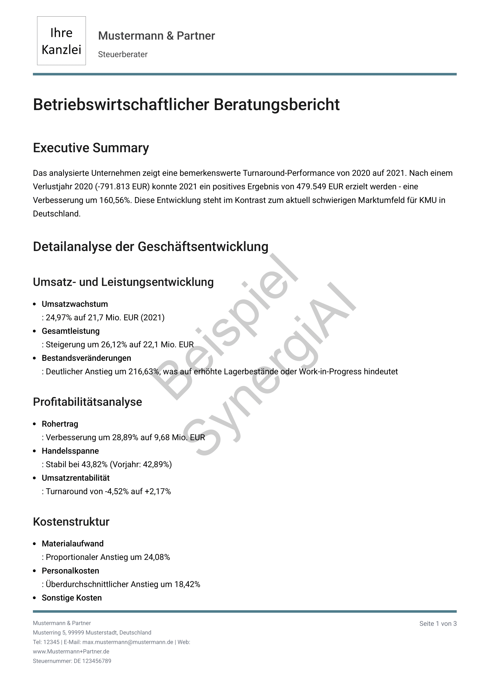 Alle Beispiele entstehen aus realen Steuerberaterdaten – automatisch generiert, individuell interpretierbar.