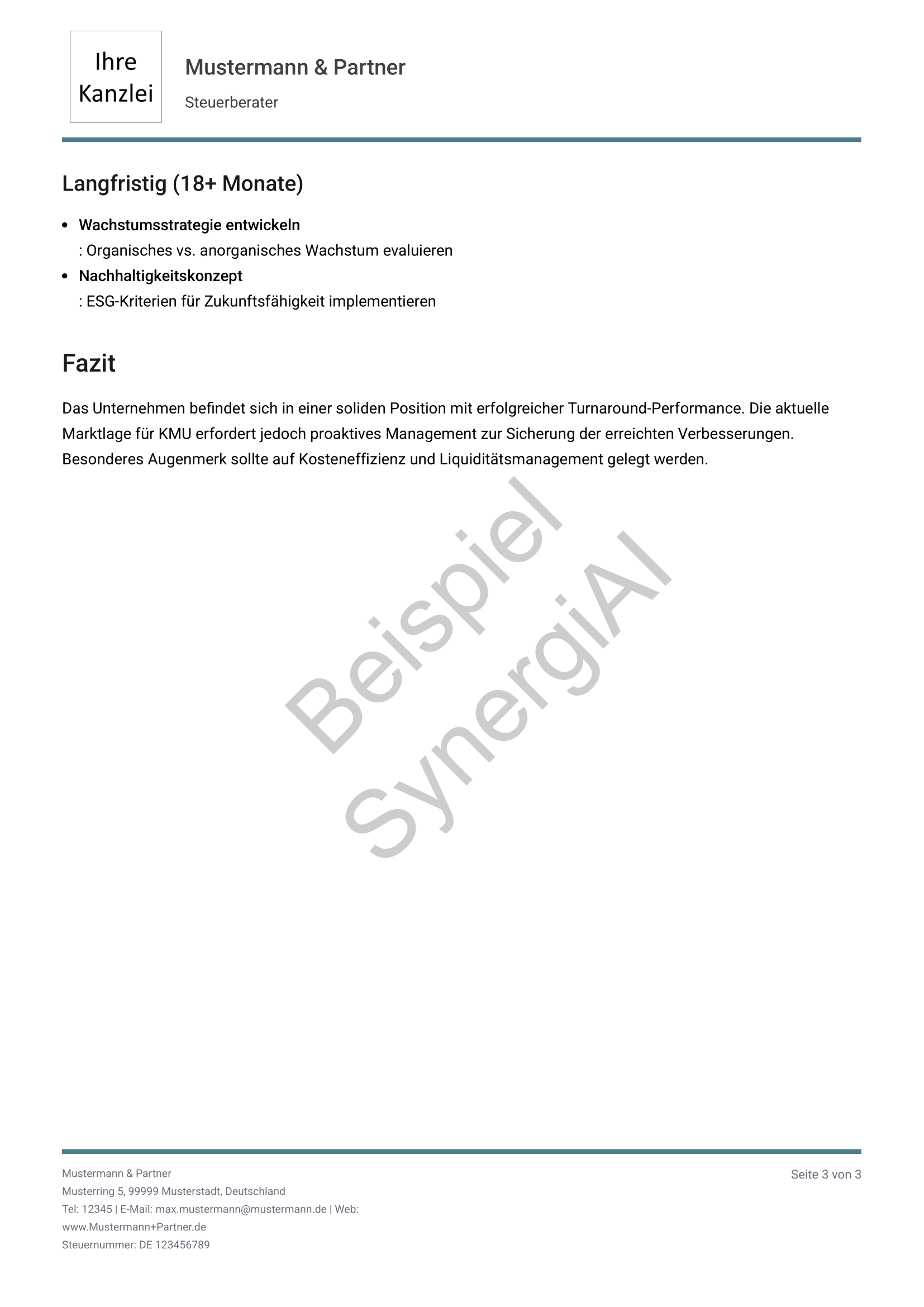 Bankfähiger Managementbericht Seite 3